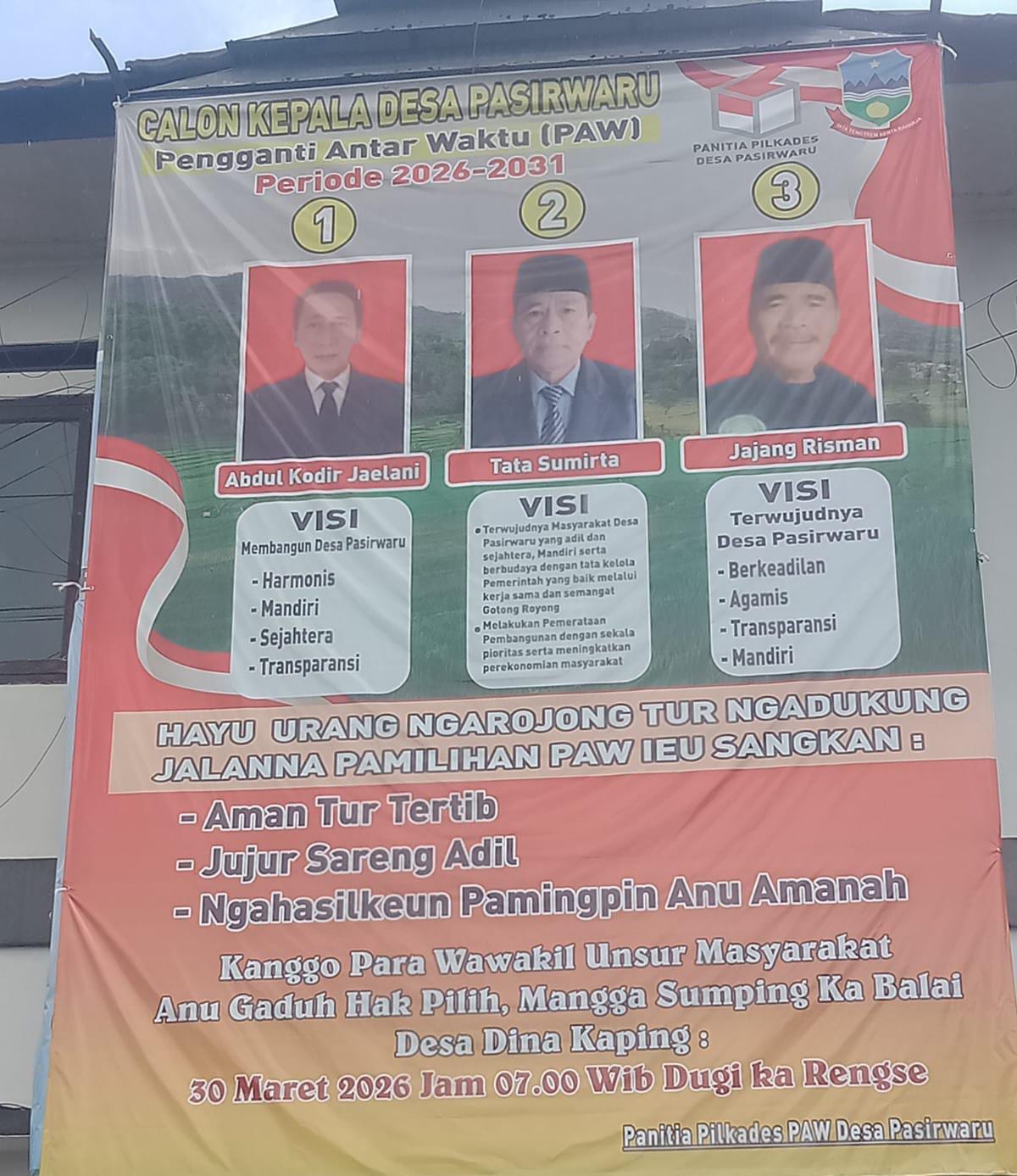 Garut — Pemilihan Antar Waktu (PAW) Kepala Desa Pasirwaru, Kecamatan Limbangan, Kabupaten Garut, berlangsung dengan khidmat dan lancar pada Senin, 30 Maret 2026.